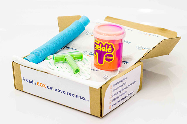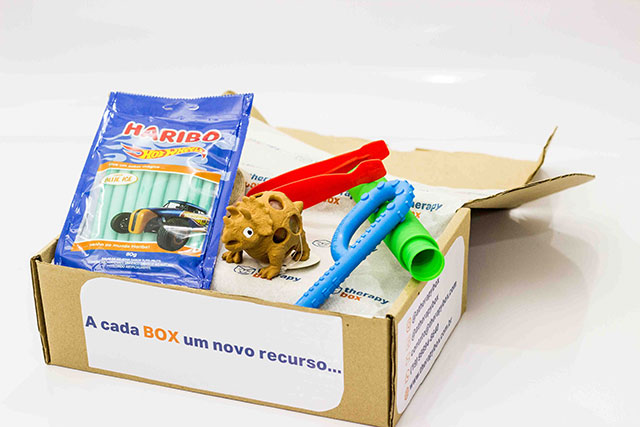 Criado por uma terapeuta ocupacional apaixonada pela profissão e um administrador empresas, o Therapy Box surgiu para auxiliar profissionais e familiares a terem recursos terapêuticos de qualidade e conhecimento sobre o uso dos mesmos aliados a um custo benefício nos produtos. Para nós, terapeutas, a atividade é recurso fundamental para iniciar um vínculo terapêutico, a fim de atingir nossos objetivos quanto ao desenvolvimento do paciente. Nossa ação e conhecimento do que deve ser feito é o principal! Sabemos que quando temos recursos terapêuticos inovadores e de qualidade em nossas mãos, todo planejamento e intervenção é facilitado. Tendo isso em vista, criamos o clube de assinatura: THERAPY BOX. No caso das famílias que queiram aderir ao serviço, a equipe do clube entra em contato com o terapeuta que faz o acompanhamento do paciente, para que sejam definidos os itens que irão em cada box. O que pode vir na sua caixa: Mordedores sensoriais (importados), guloseimas (importadas), brinquedos de uso diário que você encontraria em uma loja de brinquedos, que não são necessariamente direcionados às pessoas com deficiência, mas que têm benefícios para o desenvolvimento infantil, adulto, sensorial e de interação. Recursos para estimular a coordenação motora grossa, coordenação motora bilateral, coordenação motora fina, coordenação viso-motora e grafomotricidade. Claro que não poderia faltar os queridinhos: Fidgets – brinquedos anti-stress e equipamentos para ter na clínica. Também é possível de se encontrar produtos, como: coletes, manta, cobertores ponderados, acessórios para equipamentos de integração sensorial.
